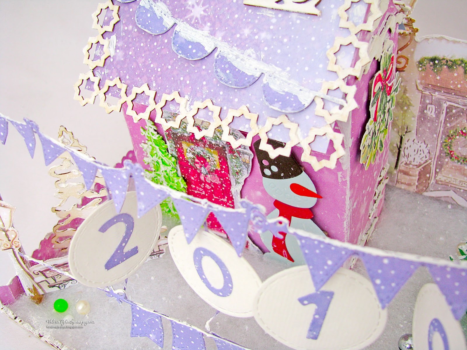 В ТК "Посиделки за скрапом" начался Челлендж №62 И все-таки она вертится! Я сделала арт-объект "Зимний дворик" для конкурса работ среди школ. Использовала простейший вертящийся элемент на ниточке - цифры на "баннере".