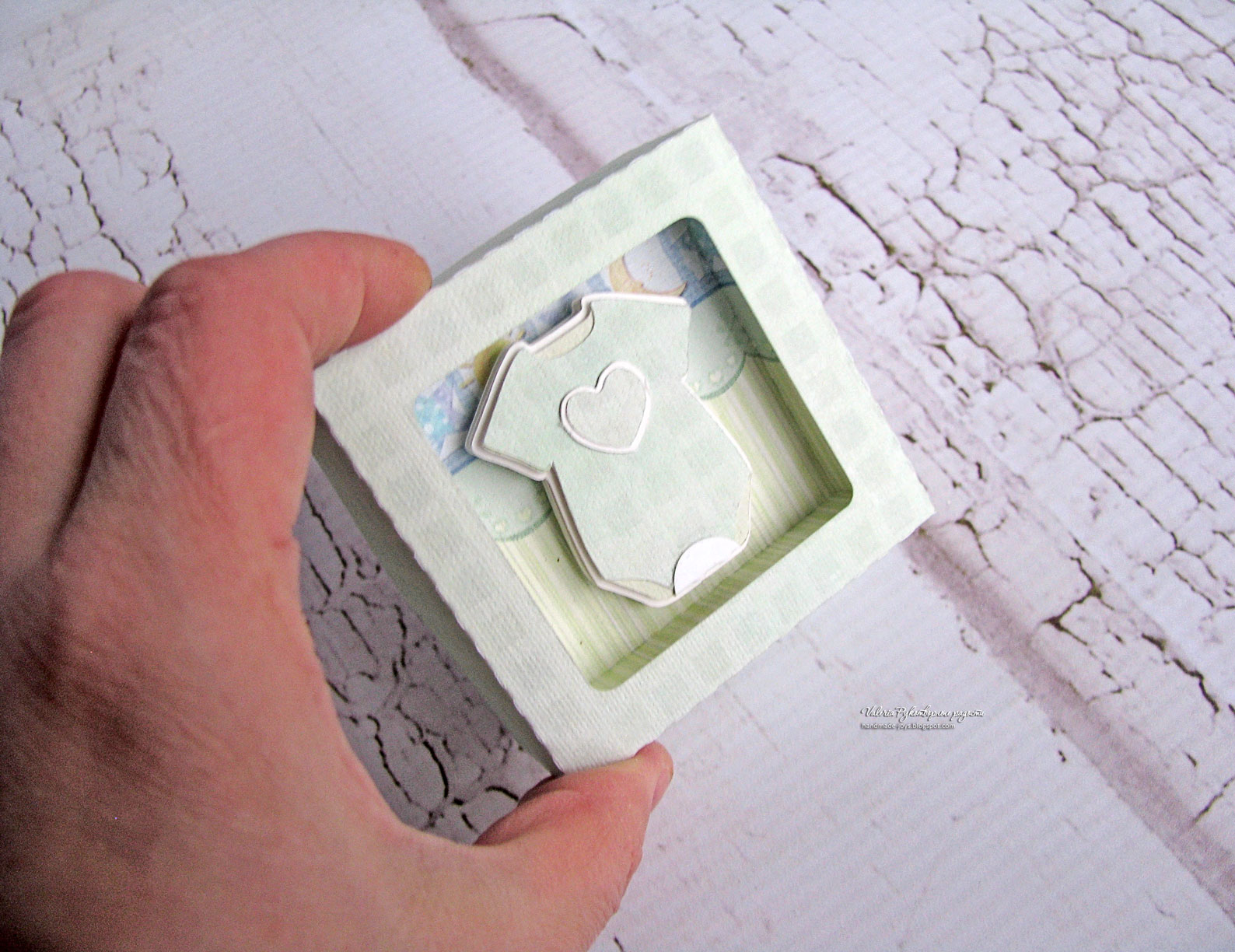 Частенько стала заглядывать в магазин Silhouette Design Store, если не за макетами, так за вдохновением. Почти все макеты я переделываю под свои проекты, поэтому все равно получается дополнительная трата времени, которая должна была бы исключаться за счет того, что покупаются готовые макеты. Ну, ладно, это лирическое отступление :) Так вот, понравился мне один макет: BABY BOX by Daniela Moscone (ниже фото работы автора). Я бы его купила, но при изменении размеров в макете приходится переделывать практически все, поэтому я сделала его сама по своим размерам, а мне нужно было изменять не просто размеры, а пропорции. В общем, авторство себе не присваиваю, идея мне понравилась - своеобразная витрина получается. Думаю, еще не раз ней воспользуюсь, возможно, с другими "объектами".